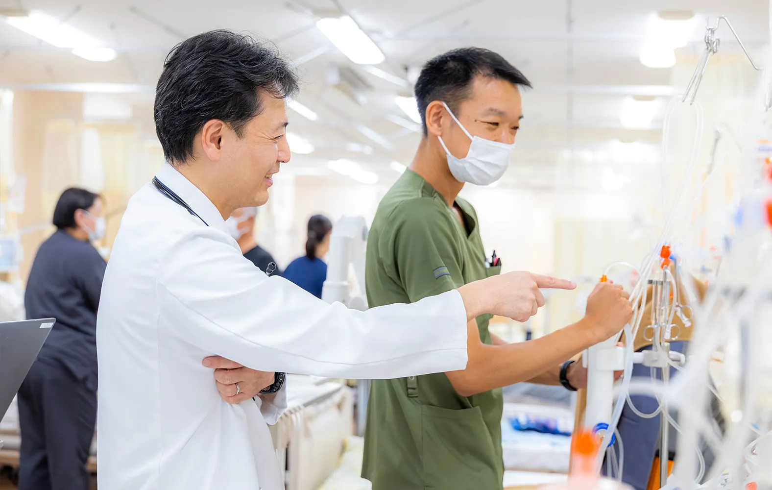 私は、自らの役割を「コンダクター(指揮者)」のような立場だと捉えています。患者さんの診療だけでなく、看護師、臨床工学技士、薬剤師、検査技師などのスタッフと連携を取りながら、チーム全体が同じ方向を向いて進めるよう調整することも、重要な仕事の一つだと考えています。